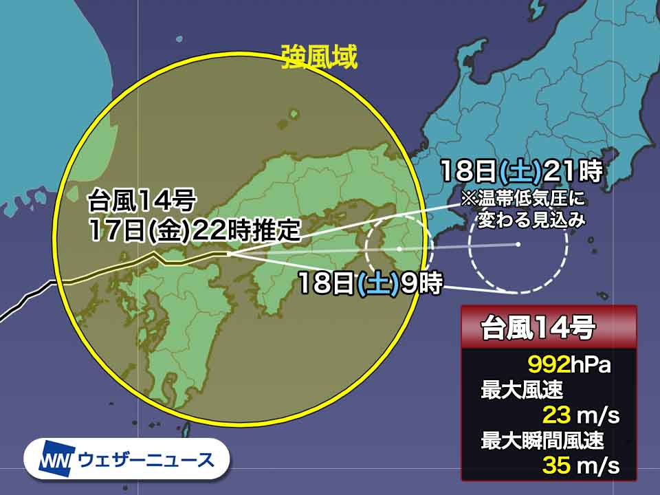 少し前の前日22時過ぎに発表のウェザーニュースの